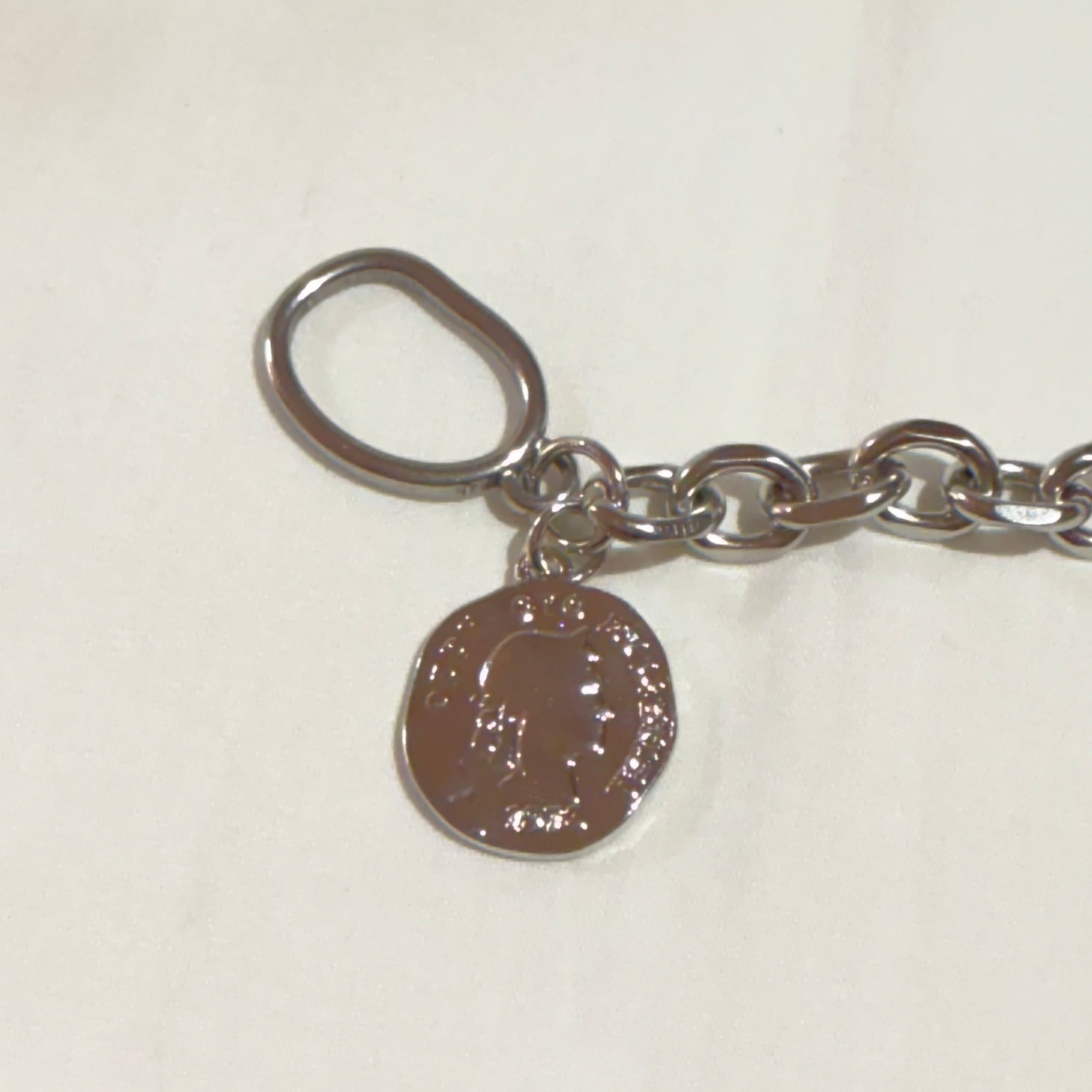 ほどよいボリューム感のチェーンに、コインチャームを添えた存在感のあるブレスレット。