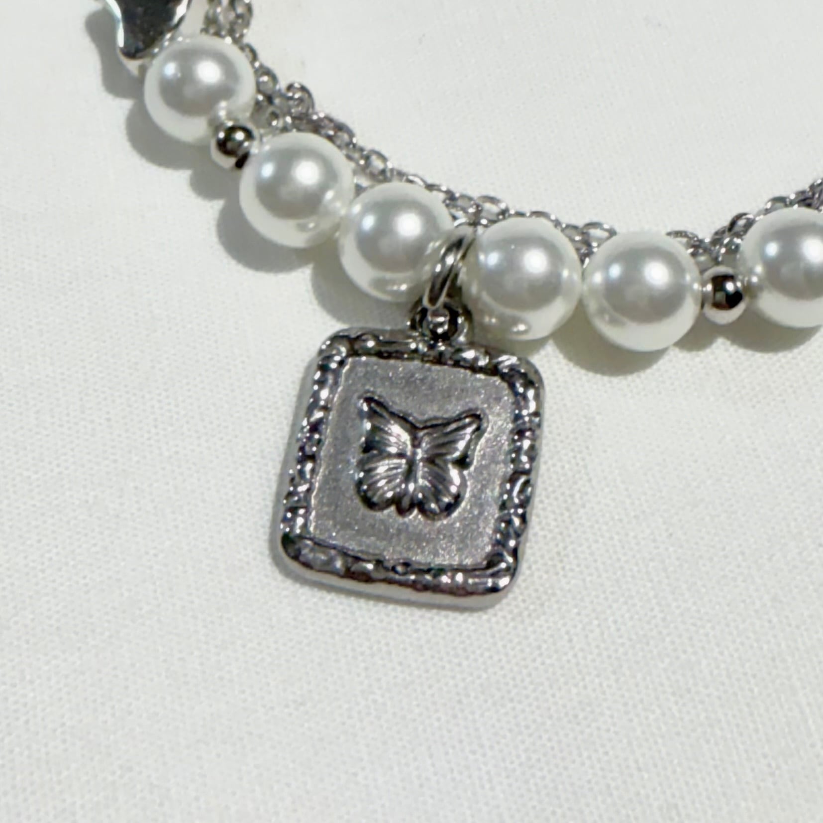 パール × 蝶シルバーブレスレット